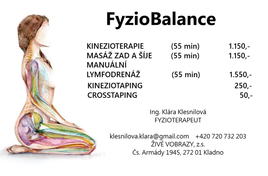 Nově nabízíme možnost objednat se na FyzioBalance, masáž zad a šíje, kinesiotaping, a to u ing. Kláry Klesnilové.